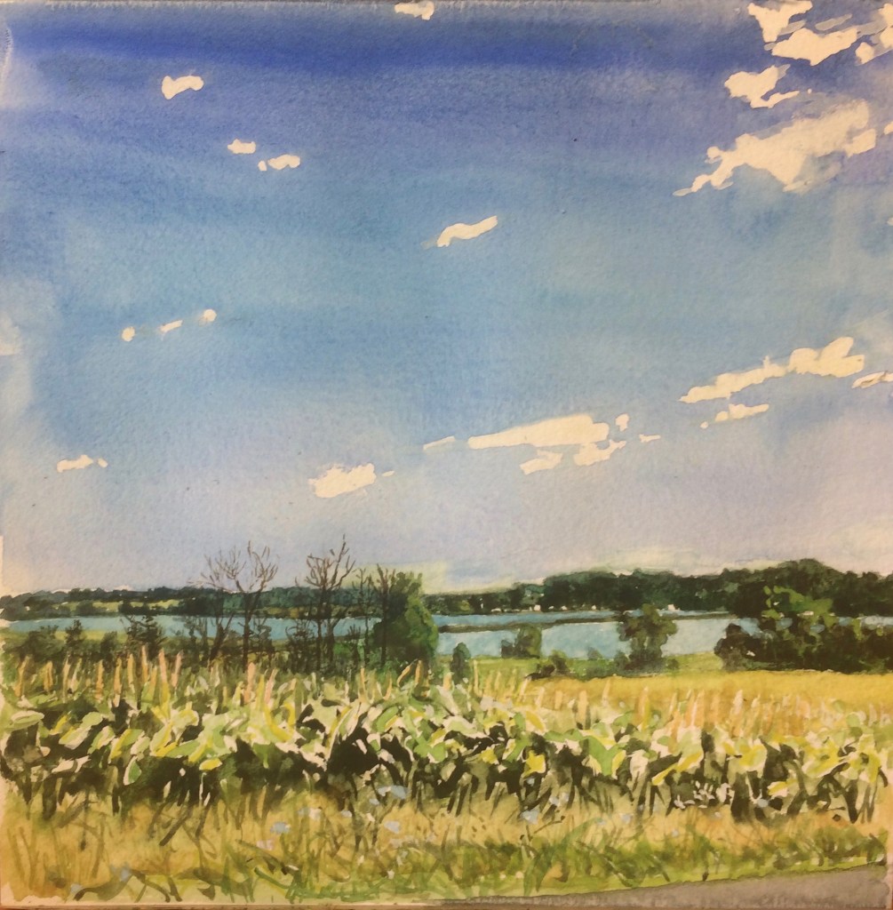 Riding around Cayuga Lake on a beautiful Saturday brought many wonderful scenes, all worthy of documenting. This is the north end of the lake with the railroad crossing the shallows. Lots of corn this time of year too. That’s how we roll in central NY State in September. Earlier in the day the sky was devoid of cloud cover and it gradually increased. We even got sprinkled on around 2 o clock by a passing shower.