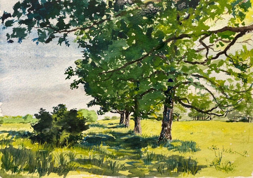 Yesterday i walked for hours with Jay on the Interloken Trail. This is just off where it crosses Searsburg Rd. We both exclaimed at the exact same time wows as we approached these trees and their shadows. It’s 7″ x 10″ using pencil and watercolor on cotton paper. $85 unframed