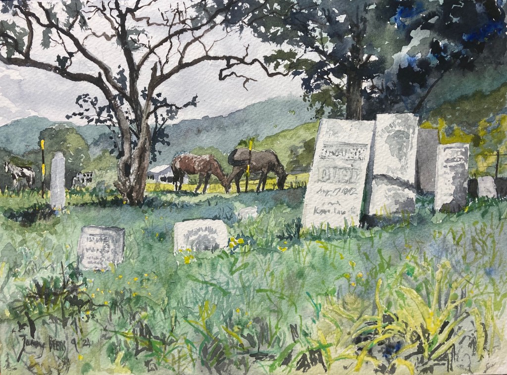 This to me is a no fail view. You can walk right in. I’m glad I saw it as we biked by last weekend. It’s 9″ x 12″ using pencil and watercolor on cotton paper. $ 125 unframed
