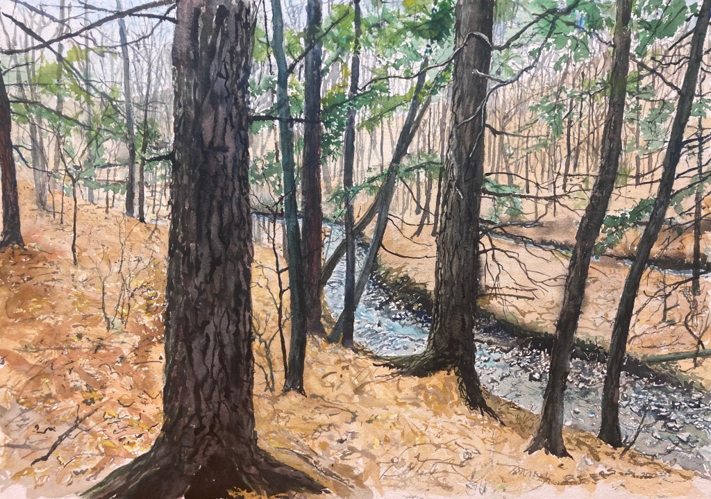 It’s a big one for me, 14″ x 20 ” using pencil and watercolor on cotton paper. $ 125 unframed