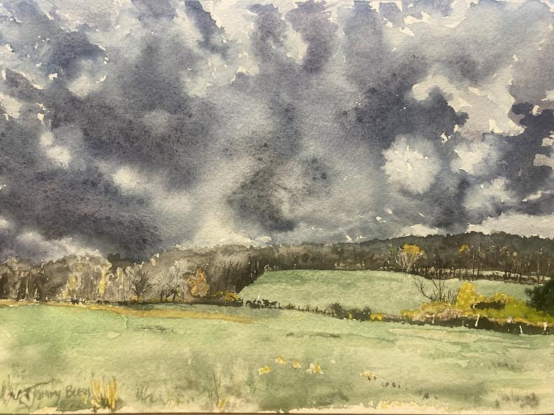 This is the first painting I’ve done of the farm where lately we get our composted manure for the gardens. Ann has a few cows hiding up in pastures. They’re very friendly as she is constantly walking among them and milking some of them. And she filled our little truck with a skidster so half the work was done. I just need to unload it back home. This was a cloudy day but lovely pastures. I hope to return when it’s sunny and get more of the history of her venture. It’s a daunting task, trying to farm with 2 little ones in tow.