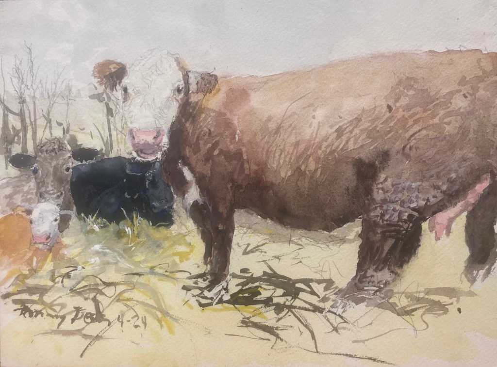 This is 9″ x 12″ using pencil and watercolor on cotton paper. $ 85 unframed This is another piece for my farming in winter series.