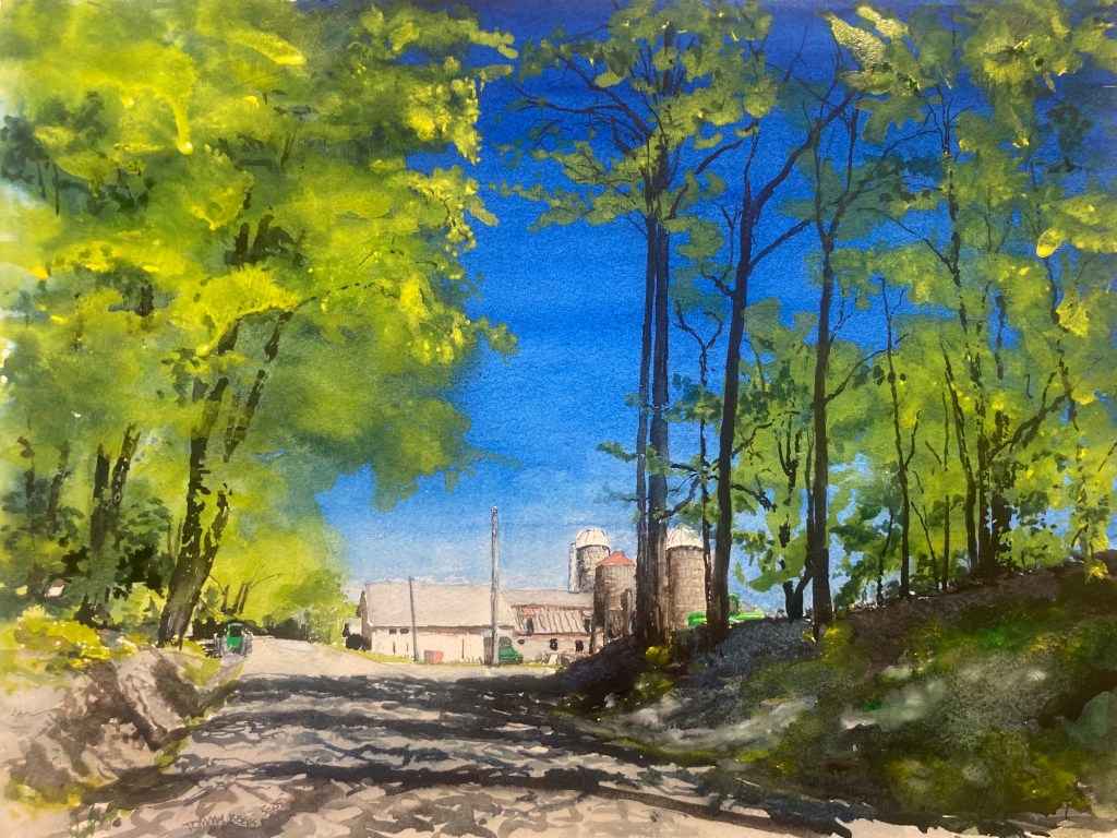 Last Sunday’s ride around Otisco Lake was a wonderful experience. Beauty everywhere. This is a farm on Cold Brook Rd. This particular valley was over the top with exquisite Spring colors. We ride in beauty. This is 16″ x 12″ on Saunders Waterford, 140# fine grain cotton paper. $100 unframed.