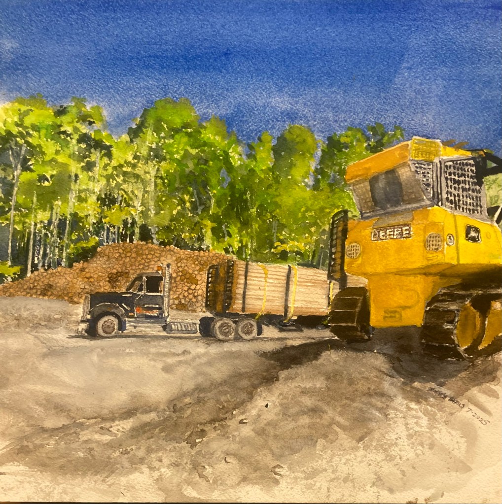 I hiked on the FLT in the National Forest where it uses Burnt Hill Rd. This was part of the eyeful gathered that day. Incredible equipment to be sure. This is 20″ x 14″ using pencil, pen and Daniel Smith watercolors on Waterford 130# paper. $150 unframed